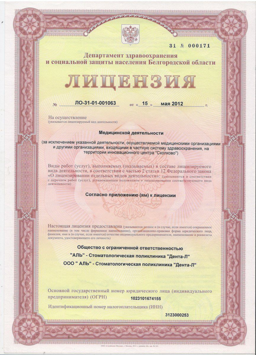 Отличительная особенность нашей клиники - ее сотрудники, принятые на работу по результатам психологических тестов и экзаменов по мануальным навыкам. В клинике работают 3 врача кандидаты медицинских наук, двум врачам присвоено звание "Отличник здравоохранения". В 2005 - 2015 годах клиника "Дента-Л" лауреат конкурса - "100 лучших услуг и товаров России"